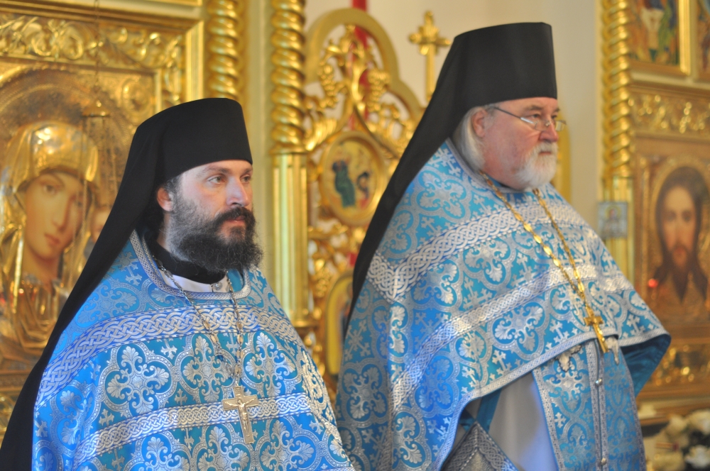 Его Высокопреосвященству сослужили наместник монастыря игумен Иннокентий (Нилов), настоятель Михаило-Архангельского храма города Красноярска иерей Александр Садовьюк, иеромонах Мелхиседек (Цхадая), штатный священник Благовещенского монастырского собора города Красноярска иерей Виталий Вальтер, священнослужители Покровского кафедрального собора и священнослужащая братия монастыря.