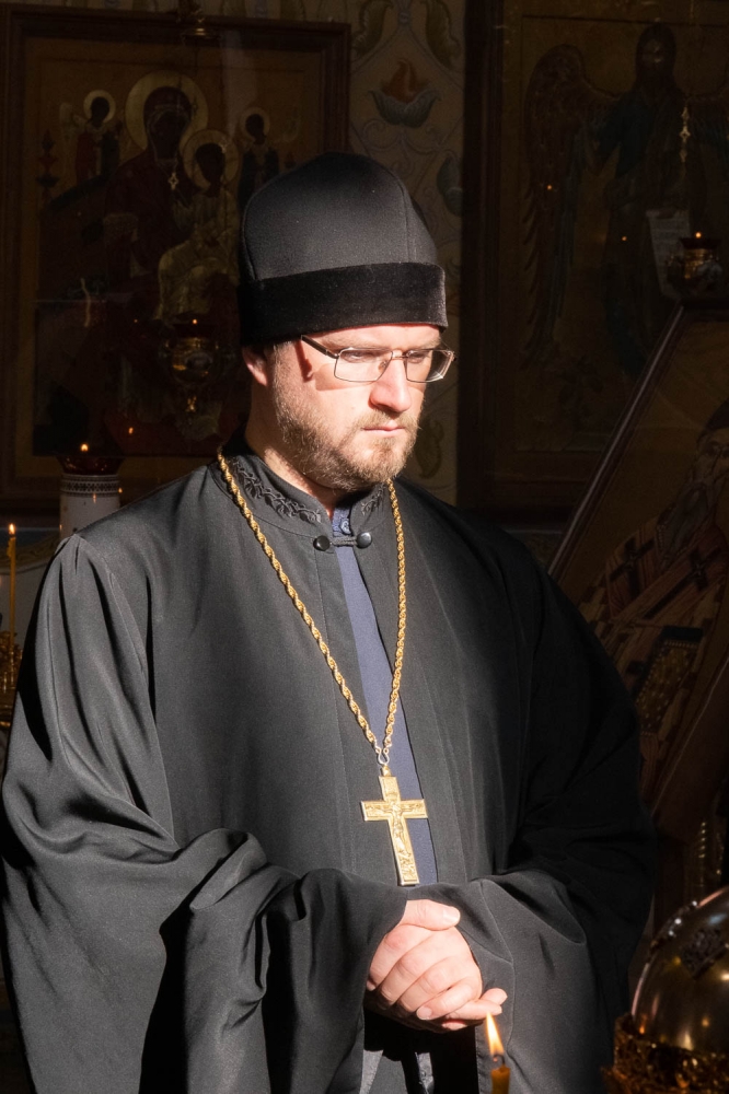 Архипастырям сослужили: руководитель Административного секретариата Красноярской епархии, настоятель Покровского кафедрального собора Красноярска митрофорный протоиерей Владимир Дорош; секретарь Красноярской епархии, благочинный церквей Левобережного городского округа Красноярска, наместник красноярского Успенского мужского монастыря игумен Иннокентий (Нилов); секретарь Канской епархии, настоятель Свято-Троицкого кафедрального собора города Канска иерей Александр Колпаков; благочинный Правобережного округа города Красноярска, настоятель Христорождественского храма Красноярска протоиерей Максим Смоляков; благочинный Берёзовского церковного округа, настоятель Введенского храма посёлка Берёзовка иерей Вячеслав Комаров; благочинный больничных храмов Красноярска, настоятель приходов апостола Андрея Первозванного и великомученика Димитрия Солунского иерей Виталий Вальтер; председатель Епархиального отдела по взаимодействию с вооруженными силами и правоохранительными органами, настоятель красноярских Феодоровского храма и Никольского храма-памятника жертвам политических репрессий протоиерей Иоанн Боев; председатель епархиального Отдела религиозного образования и катехизации, настоятель храма святых мучениц Веры, Надежды, Любови и матери их Софии иерей Андрей Бабин; настоятель храма Михаила Архангела и чуда его в Хонех города Красноярска протоиерей Александр Садовьюк; настоятель Михаило-Архангельского храма города Железногорска протоиерей Роман Нещерет; настоятель красноярского храма святого благоверного князя Александра Невского протоиерей Павел Богинский; братия Успенской обители и штатные священнослужители Покровского кафедрального собора.